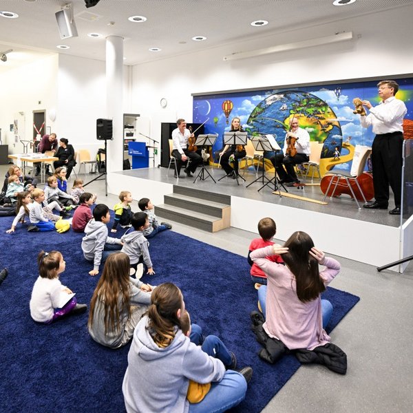 Wenn die Bücherei zum Konzertsaal wird, dann sind die Münchner Philharmoniker zu Besuch. In dieser Saison bringen wir unsere beliebten Familienkonzerte an noch mehr Orte in München. Zusätzlich zu unserem Konzert im Kulturzentrum 2411, das seit langem Teil der Reihe »GastSpiele« der Münchner Volkshochschule ist, besuchen wir nun auch verschiedene Stadtteilbibliotheken und schaffen dort mit fantasievollen Geschichten und wunderbarer Musik ein familienfreundliches Angebot für Kinder im Kindergartenalter.
